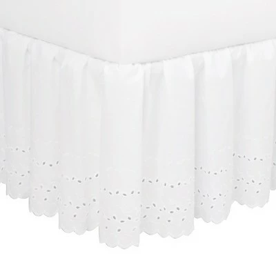 Update the look of your bed with the stylish Eyelet Bone Bedskirt. The eyelets and subtle embroidery along the edge of this ivory or white bedskirt give it an elegant and classic look that fits in nicely with any bedding set. Made of a lovely and sturdy cotton weave, this eyelet bedskirt comes in twin, full, queen, king and California king sizes.