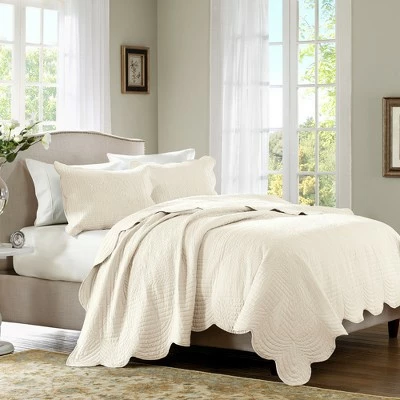 The Genoa 6pc Daybed Set is the perfect addition to update your guest room. The decorative stitch pattern pairs easily with your existing decor and will add a new decorative element to your bedroom with the beautiful scalloped edges. This quilted daybed cover features an overscaled motif, while scalloped edges on the shams complement the entire look. An embroidered decorative pillow and a solid bed skirt add an elegant finish to this daybed set.