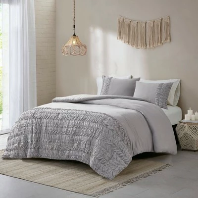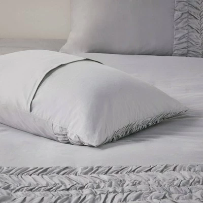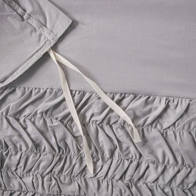 Turn your bedroom into a cozy and clean space with the Sophia 3 Piece Cotton Duvet Cover Set. This cotton duvet cover features a solid color section with a ruched design at the foot end that adds dimension to the shabby chic look. The 2 matching shams also flaunt a ruched pattern to coordinate with the farmhouse duvet cover. Machine washable for easy care, this cotton duvet cover set brings a comfortable and charming update to your bedroom. A button closure at the foot end secures a padded insert within the duvet cover and inside corner ties prevent it from shifting (insert is NOT included).