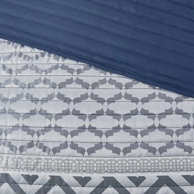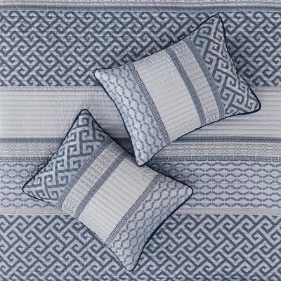 The William 4 Piece Reversible Jacquard Coverlet Set provides an elegant and luxurious update for your bedroom. This jacquard reversible coverlet features a striped design with several geometric prints to create an updated traditional look. The solid reverse complements the top of the bed, while 2 matching shams mirror the design of the coverlet creating a sharp coordinated look. Also included is a square decorative pillow provides the finishing touch to the jacquard quilt cover set. Machine washable for easy care, this reversible coverlet set brings a refined traditional allure to your bedroom thatβs perfect for summer or as an added layer in the winter.