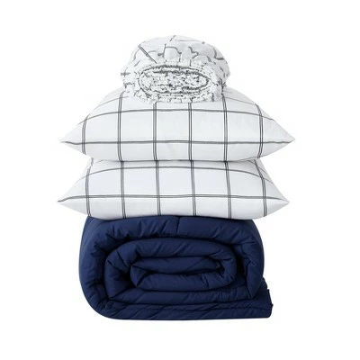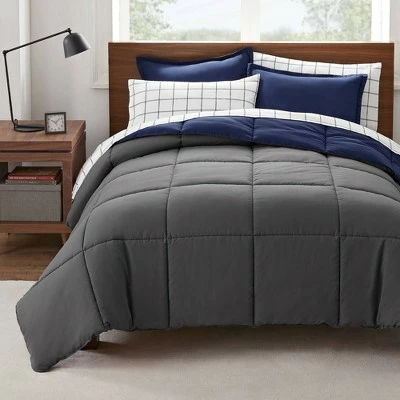 Safe. Comfortable. Stylish. Clean. Easy. A one-stop-shop for all your bedroom needs! The Serta Simply Clean Reversible Bed in a Bag Set is perfect for any bedroom! The reversible comforter set provides two looks that are easily interchangeable. It merchandises perfectly with the grid sheet set to add an element of style, don’t worry about buying multiple non-coordinating pieces ever again! Soft and cozy, this durable Bed-in-a-bag set is packed full of special features including both anti-microbial and stain resistant treatments, helping to keep your bed fresh and smelling clean all year round. The soft, durable, polyester fiber makes it easy to care for and helps you get a great worry-free night’s sleep every night.