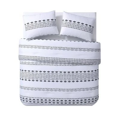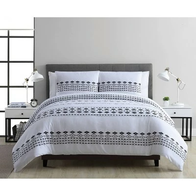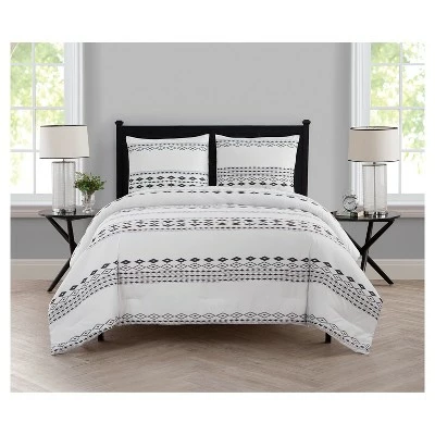 A subtle take on the Aztec print trend, the VCNY Home Azteca Comforter Set will bring a modern mix of patterns to your space. Horizontal lines of black diamonds pop against the comforterβs crisp white background, which is perfectly paired with matching shams (one sham in Twin set) for a complete look youβll love.