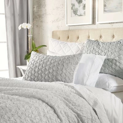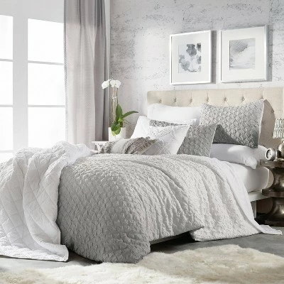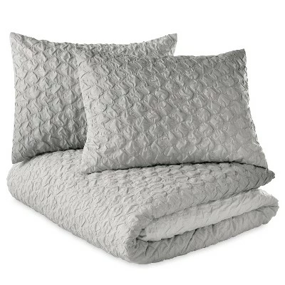 Bring chic style to your bedroom with the Ombre Honeycomb Reversible Duvet Cover Set. Showcasing a honeycomb ombre design from white to gray, the alluring bedding is the perfect way to give your bedroom a fresh update. Machine washable for easy care. Twin duvet cover set includes: one duvet cover, one sham. Full/Queen duvet cover set includes: one duvet cover, two shams. King duvet cover set includes: one duvet cover, two shams.