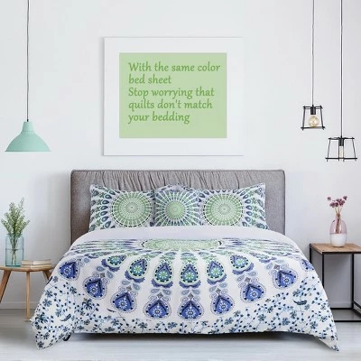 - Product Name: 5 Pcs Polyester Bohemian Bedding Sets King White and Green – PiccoCasa