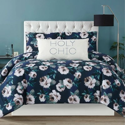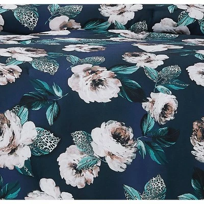 Dusty blue shades with overtones of gray and teal are the backdrop for Christian Siriano Mags print. The large white blossoms are layered over the textured background pint. The reverse is a coordinating solid color. Shams feature the same print as the face of the bedding. Face cloth is 200 thread count, 100% cotton fabrics and the reverse is 100% cotton for natural cotton comfort. Face and back of the comforter and shams are 100% cotton woven cloth. Comforter is filled with 100% polyester fiber filling. This item is machine washable, but please be sure to use appropriate sized machinery to avoid any excess wear on the items.