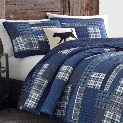 Enjoy the convenience of two different looks in one with this reversible three-piece quilt set by Eddie Bauer. The plaid pattern on this cotton quilt set offers a classic vintage look while matching pillow cases allow for a matching effect. The set is great for use on the bed or for snuggling on the sofa. The set is machine-washable for easy care and maintenance. Twin quilt set includes: one twin quilt (88″l x 68″w) and one standard sham (21″l x 27″w), full/queen quilt set includes: one full/queen (90″l x 90″w) and two standard shams (21″l x 27″w), king quilt set includes: one king quilt (96″l x 104″w) and two king shams (21″l x 37″w)