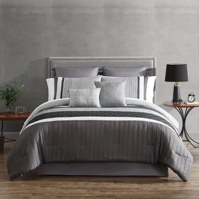 - Includes: 1 Flat Sheet, 2 Euro Shams, Bed Skirt, 2 Pillowcases, Comforter, 1 Fitted Sheet, 2 Decorative Pillows, 2 Shams