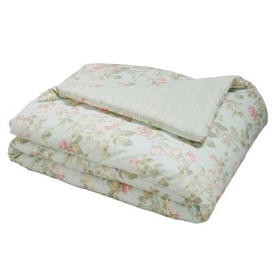 - The Laura Ashley Madelynn Comforter Bonus Set Features Sweet Pink Floral Motifs On A SOFT Seafoam Green Ground Available In Alternate Sizes