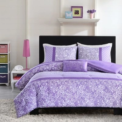 - Brighten your room with this polka dot, paisley and floral printed comforter set in purple, grey, and white colors