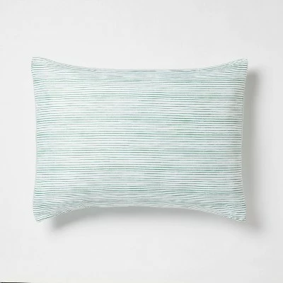 For timeless appeal, decorate your bed with the Striped Decorative Comforter Set with Throw from Room Essentials™. This decorative comforter set includes one printed comforter, one sham, one oblong pillow and one throw blanket, each made from a soft fabric to ensure you stay cozy and comfy as you drift off to dreamland. The striped comforter and sham are adorned with thin green stripes that match the solid green reverse, while the coordinating sherpa-like white oblong pillow and bed blanket round off the decor. Mix and match this striped comforter set with solid sheets and add fringed pillows to accentuate your contemporary and modern bedroom decor.