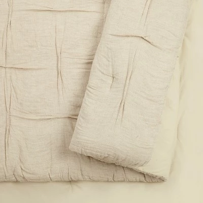 Transform your master suite or guest bedroom in a snap with the Natural Instincts Bedding Collection from Ayesha Curry. This decorative bedding collection includes a soft cotton comforter with two matching shams, each boasting a textured pintuck design, while the additional throw pillows bring a dash of color and patterns to your bedroom decor. Designed to keep you comfy and cozy as you sleep, this comforter and sham collection brings warm and neutral hues that can be paired with bolder pieces to bring a refreshing update to your sleeping nook.