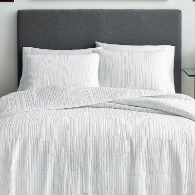 Bring modern style to your bedroom with the City Scene Tally Quilt Set. The solid white ground is broken up with dimensional linework made from a gray intricate stitching design. Lightweight enough for year-round use, this all-cotton quilt is the perfect addition to your bedding ensemble. Twin Quilt Set includes: One twin quilt (88″LX68″W) and one standard sham (21″LX27″W), Full/Queen Quilt Set includes: One full/queen (88″LX90″W) and two standard shams (21″LX27″W), King Quilt Set includes: One king quilt (92″LX104″W) and two king shams (21″LX37″W)