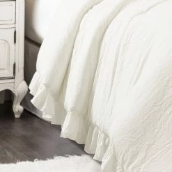 - Set includes one comforter, two coordinating shams, one coordinating bedskirt, two coordinating euro shams, three decorative pillows and matching coverlet