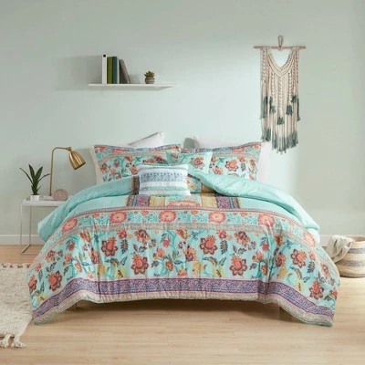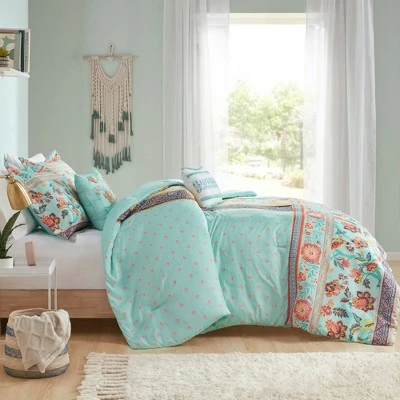 Breathe new life into your bedroom with the Valerie Boho Printed Comforter Set. Create a fresh spring feeling with this boho comforter that features a floral print with a pieced border, for a globally inspired look. Two matching shams (1 in Twin/TwinXL) pair beautifully with the comforter, while two decorative pillows add the finishing touches. This boho comforter set uses an antimicrobial treatment that provides built-in freshness protection, reducing the growth of odor causing bacteria to keep fabric lasting longer.