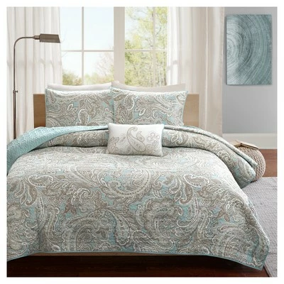 The Dierdre Collection creates an organic look and feel to your space. The charcoal gray is the perfect base for this updated paisley design creating a restful oasis in your bedroom. Printed on 200 thread count cotton, this set includes a duvet cover, two shams and two decorative pillows.