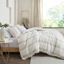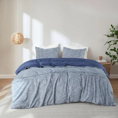 The Reese 3 Piece Organic Cotton Duvet Cover Set offers a refreshing update to your bedroom. This organic cotton duvet cover features button placket details on the soft fabric, for a modern farmhouse look. The 2 matching shams also showcase button placket details that complement the oversized duvet cover set. An antimicrobial treatment provides built-in freshness protection, reducing the growth of odor causing bacteria to keep fabric lasting longer. This farmhouse bedding set is also OEKO-TEX certified, meaning it does not contain any harmful substances or chemicals to ensure quality comfort. A button closure at the foot end allows you to place a padded insert within the duvet cover and internal corner ties prevent it from shifting (Insert is NOT included).
