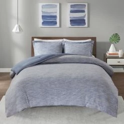- β’ Modern contemporary cotton rich comforter set in chambray indigo