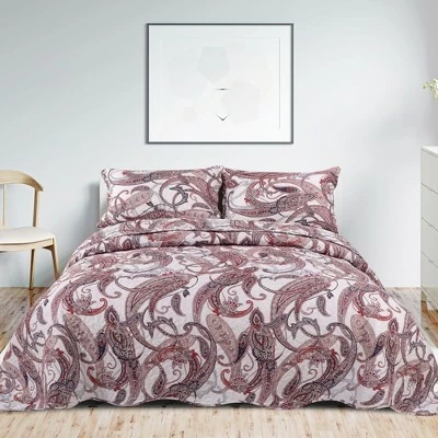 This PiccoCasa Brown Coverlet Set is made with 100% superior quality polyester and available in three sizes (Twin/Queen/King). Dyed by reactive printing with a Brown Paisley Floral pattern, the coverlet has better moisture absorption than ordinary printing, high color fastness, and not easy to fade after multiple washing, not easy to pilling and shrink. The quilting process makes the bedspread filler even and not easy to agglomerate, which can firmly fix the edge. Durable and non-fluffing. Highest washing temperature is 30β, hang dry, do not bleach, do not dry cleaning, tumble dry on low with similar colors, and low-temperature iron when needed. Please allow for slight color differences due to the monitor resolution variations and studio light brightness. Variability of 2-3 cm is possible due to the manual measurement process.