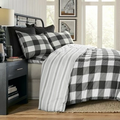 - COORDINATE YOUR ROOM DECOR: Create a wonderful bedroom space with our coordinated reversible matching duvet cover set. The black and cream check design brings farmhouse, traditional accents into your home and will match a variety of different looks and bedroom decor. You can also freshen your room with matching quilts, bedspreads, throw blankets, drapes, shower curtains and coordinating decorative pillows from the Levtex Home collection.