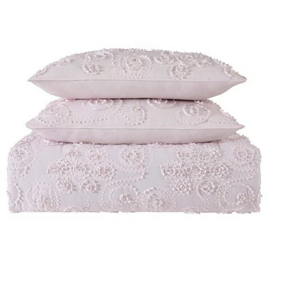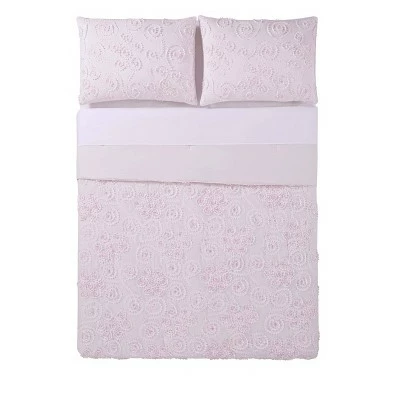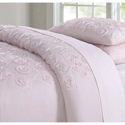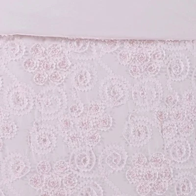 Pretty Petals is an amazing, beautiful pattern of applique petals on long flowing vines. The three-dimensional design allows the light in the room to play off the surface of the bedding and shams for a look that changes throughout the day and night. The collection comes in several solid colors in 100% microfiber polyester face and back for easy care. Sets included sham(s) with the same applique face pattern and fold enclosures. Face and back of the comforter and shams is 100% microfiber polyester with applique flower petals and the comforter is filled with 100% polyester fiber filling. All components of this item are machine washable; however, care should be taken to use the proper size equipment so as not to damage the applique.