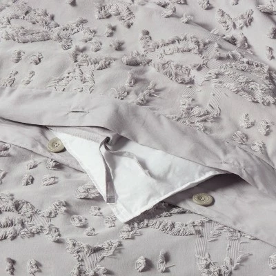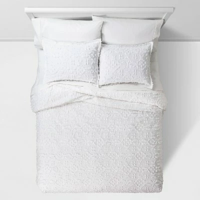 Give your sleeping retreat a shabby chic update with this Clipped Chenille Duvet Cover & Sham Set from Threshold™. Crafted from 100% cotton with sturdy backing for cozy comfort, this jacquard duvet cover set comes with an allover woven chenille clipped detailing to add soft texture and dimension to the top of your bed, while the matching pillow sham gives your space a complete look. The button closure helps the duvet cover stay in place, and the inner envelope on the sham make it easy to cover your pillow. Mix and match this bedding set with sheets and decorative pillows to create a stylish and comfy bedroom space.