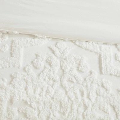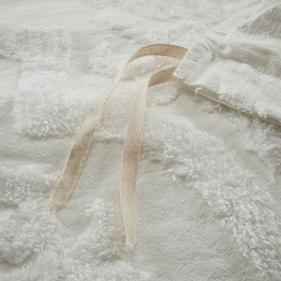 The Eugenia Tufted Chenille Duvet Cover Set offers the perfect touch of elegance to your bedroom decor. A damask chenille design is beautifully displayed the 100% cotton face of the white duvet, while matching shams complement the top of the bed for stunning blend of shabby chic and traditional styles. This cotton chenille duvet cover set brings true beauty and grace to your bedroom. A button closure helps secure a comforter insert within the duvet cover and four inside ties in the corners help prevent it from shifting (insert is NOT included). Due to the nature of the chenille fabric, some shedding will occur naturally in the first 3-4 washes.
