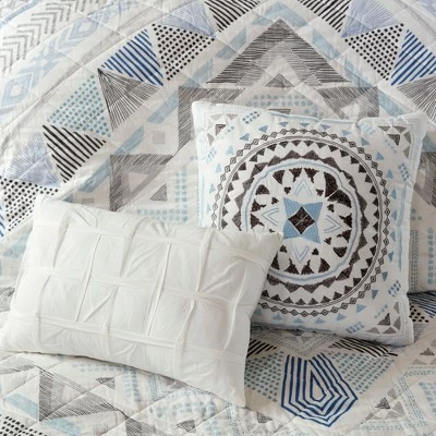 The Sydney 7 Piece Cotton Reversible Coverlet Set brings a fresh new look to your bedroom. The 100% cotton coverlet flaunts an abstract geometric pattern on the face and a striped print on the reverse for a casual look. The shams match to the reverse of the coverlet to complement the bedding set, while quilted Euro shams add texture. An embroidered square decorative pillow and a solid oblong pillow provide the finishing touches to this soft cotton coverlet set. This bedding set is also OEKO-TEX certified, meaning it does not contain any harmful substances or chemicals to ensure quality comfort and wellness.