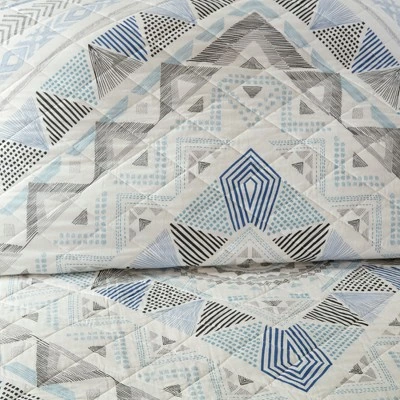 - β’ Abstract geometic printed coverlet reverses to a stripe print