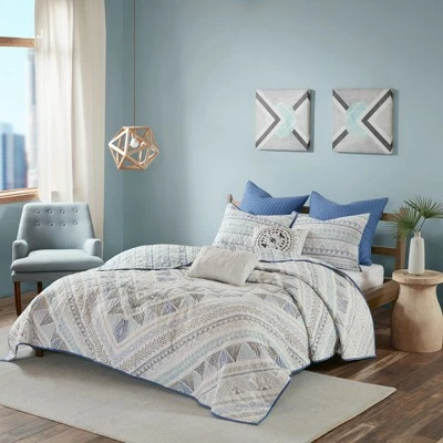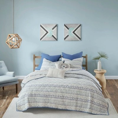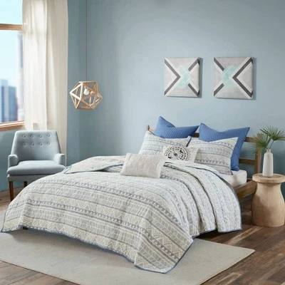 - β’ Modern and contemporary 7 piece cotton printed reversible coverlet set