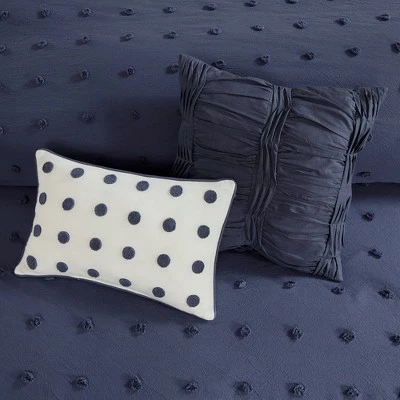 The Kay Cotton Jacquard Comforter Set brings a soft and charming update to your bedroom. The cotton comforter features small tufted chenille dots that create a fresh shabby chic look. Matching shams (1 in Twin/TwinXL) and quilted Euro shams (1 in Twin/TwinXL) complement the cotton jacquard comforter set. Two decorative pillows are also included, adding the finishing touches. This bedding set is also OEKO-TEX certified, meaning it does not contain any harmful substances or chemicals to ensure quality comfort and wellness.