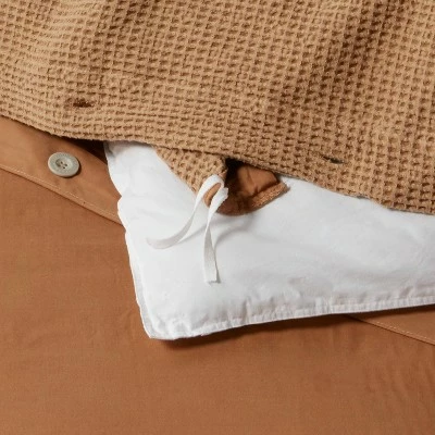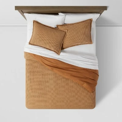 Transform your bed space into a comfy, restful retreat with this Washed Waffle Weave Duvet & Sham Set from Threshold™. This waffle weave bedding set comes with a duvet cover that has a button closure; it also includes a matching pillow sham with an envelope closure and a one-inch flange, offering easy on and off. Crafted from a cotton waffle weave fabric on the front and 220-thread-count cotton on the reverse, this waffle duvet cover set not only provides comfort but also simplifies your life — the bedding fits in a standard washing machine for easy care, and it’s a breeze to store. Simply add an insert from Room Essentials or Made By Design to this 100% cotton bedding set, and you’ll be sure to keep comfortable whether you’re reading, ready for bed or just taking a nap.