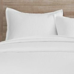 Update any dΓ©cor with the simple, casual look of the Vue Pebble 3pc Coverlet Set. This versatile coverlet features a quilting texture inspired by pebbles and stones and a soft, lived-in aesthetic in crisp white. Set includes one coverlet and two coordinating shams. Queen set measures 90×90 with two 20×26 standard shams. King set measures 102×90 with two 20×36 shams. Machine washable. 100% Polyester.