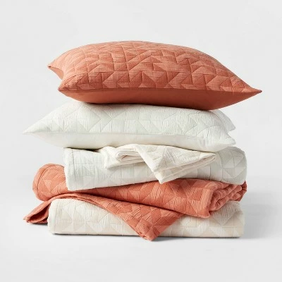 Sleep in luxury and style with the Geometric Matelasse Bedding Collection from Threshold™. This decorative bedding collection features a quilt and a coordinating quilt sham, each made from 100% cotton construction that brings year-round comfort to your resting space. Adorned with a dual-hue geometric matelasse design, this quilt and sham collection instantly enlivens your bedroom decor. Great as a set, you can pair them with other bedding sets to let your imagination run free while decorating your sleeping nook.