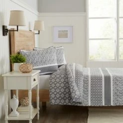 Enhance your bedroom or guest room with this beautiful patterned 3-piece quilt set, part of our Marcie Collection. The blend of microfiber and cotton-fill means it’s perfect for all-season use. This quilt will add the right amount of color to your room, choose from our two soft colors that will take you to dreamland.