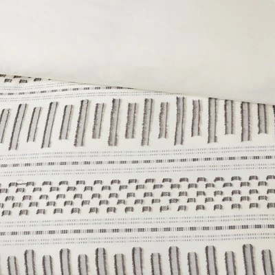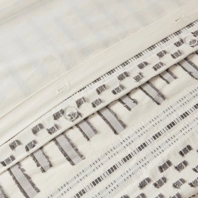 - Casual 100% cotton jacquard duvet set with eyelash look woven details in horizontal stripes