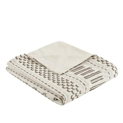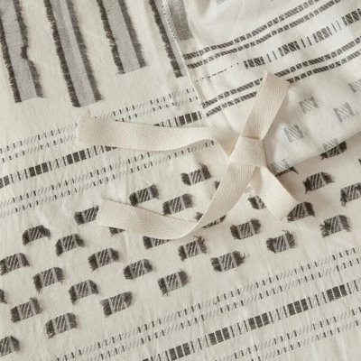 Give your bedroom a comfortable farmhouse look with INK+IVYβs Rhea Cotton Jacquard Duvet Cover Mini Set. The off-white cotton duvet cover features horizontal stripes, in navy hues, with eyelash-looking woven details that add a charming accent to the top of the bed. Matching shams mimic the design seen on top of the bed completing the cotton jacquard bedding set. Made from 100% cotton, this jacquard duvet cover set is machine washable for easy care and provides a causal allure for your bedroom decor. A button closure allow you to place a comforter insert within the duvet cover and four inside ties on the corners help prevent it from shifting (Insert is NOT included). This bedding set is also OEKO-TEX certified, meaning it does not contain any harmful substances or chemicals, ensuring quality comfort and wellness.