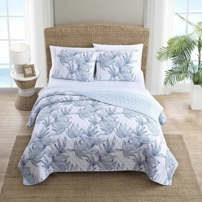 Transform your room with the beautiful Tommy Bahama Kayo quilt. This quilt features a beautiful blue tropical floral pattern on a crisp white ground. This premium quilt is lightweight with a casual, soft, and cozy feel. This item is quilted to last, perfect to use throughout your home, all year long- versatile-all-seasons Item. Available in alternate sizes. Machine washable.