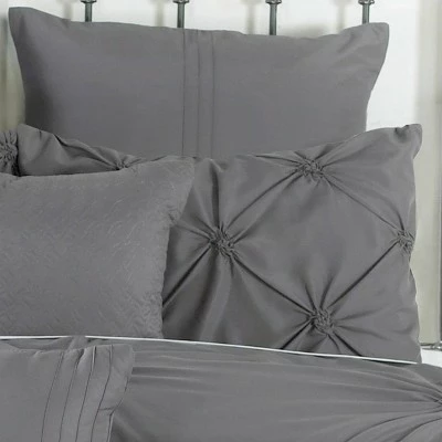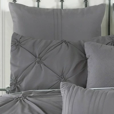 - Includes: 2 Decorative Pillows, 2 Standard Shams, 2 Euro Shams, Bed Skirt, Queen Comforter