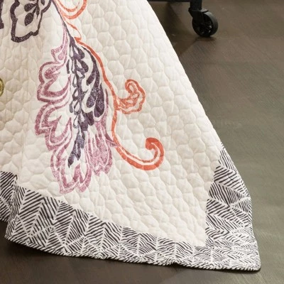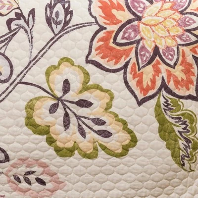 Lush Décor’s Aster Quilt 3pc Set features a delicate floral engineered pattern on 100% cotton. This soft cotton quilt set will add life to any bedroom with its bright pastel colors and large blooms. The Aster Quilt 3pc Set is reversible, giving you the opportunity to choose your style each day. Opposite the bright and lively front design is a calmer and more subdued pattern. This quilt is lightweight and perfect for the spring, summer and early fall, or for anyone who lives in a region with warm weather year-round. If you prefer a heavier weight, the Aster pattern is available in a 5pc comforter set. Our Aster Quilt 3pc Set is available in both Full/Queen and King sizes and includes a beautiful soft cotton quilt and two matching shams to complete the look. It would look fantastic in your master bedroom or your guest bedroom. When it comes to decor style, this quilt set is suited well for farmhouse and country style design themes. Part of the Aster collection.
