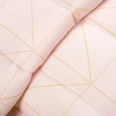 Give your bedroom an updated modern look with this soft and comfy Trio Geo Metallic Print Comforter Set from Lush Décor which features a geometric metallic print. The subtle pattern creates a point of interest without overwhelming the look of the room. The Trio Geo Metallic Print Comforter Set, which is available in two color options to create a calming atmosphere, features fun and inspiring pattern of geometric shapes in metallic print to brighten any dorm room or campus apartment. This Trio Geo Metallic Print Comforter Set is sure to impress all your guests with the incredible amount of special details that are incorporated in the design. The fabric is so soft you will want to surround yourself with this comforter and never get out of bed. In addition to dorm room decor, this Trio Geo Metallic Print Comforter Set is well suited for updating the bedroom of your young children and teenagers or even your guest bedroom. The Trio Geo Metallic Print Comforter Set Back To Campus Dorm Room Bedding is available in two sizes. The Twin XL size is a 4-piece set that includes a soft and luxurious 230 GSM comforter, one matching pillow sham, and two decorative pillows. It is an oversized Twin, so it will fit on a Twin bed or Twin XL bed. The Full/Queen size is a 5-piece set that includes the comforter and decorative pillows with two matching pillow shams. For your convenience, this comforter set is safe to machine wash and tumble dry. However, you should not use an iron on this comforter set. Please refer to the product label for full care instructions.
