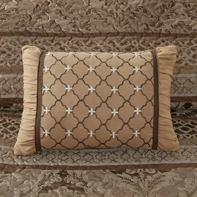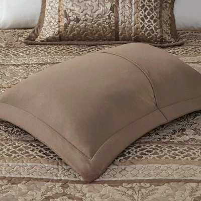 To add a touch of richness to your current dΓ©cor, the Mirage 5pc Polyester Jacquard Reversible Bedspread Bedding Set offers a luxurious update to your room. Made from polyester jacquard, the bedspread and shams share leaf, striping and ironwork motifs. This collection will adding a lavish feeling to your decor. Two decorative pillows feature pleating and embroidery details that correspond back to the bedspread, bringing the entire look together. Machine washable for easy care, spot clean on decorative pillows, this jacquard bedspread set brings an extravagant and traditional touch to your bedroom.