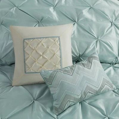 - Includes: 3 Decorative Pillows, 2 Standard Shams, Bed Skirt, Comforter