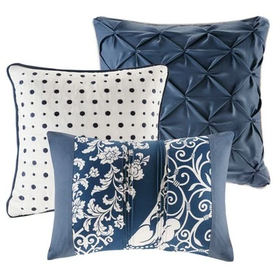 - Includes: 3 Decorative Pillows, Bed Skirt, Comforter, 2 Shams