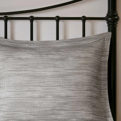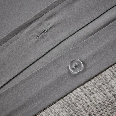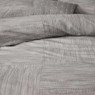 Bring a subtle, laid-back appeal to your bedroom with the Kelan Printed Seersucker Duvet Cover Set. The three-piece bedding set is accented with a classic seersucker look, with a striped pattern in gray and white. It includes a duvet cover and two standard shams. The boxed patchwork design on the duvet cover further enhances its textural appeal, while the flanged shams sport four-inch envelope closures to keep the pillows neatly tucked.
