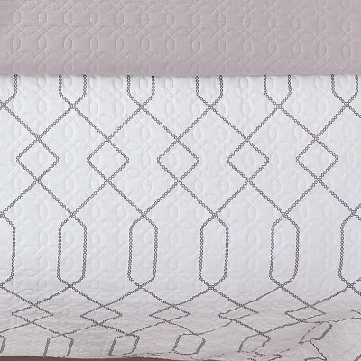 Update and refresh your restful retreat with this geometric pattern on the Alexander Layered Comforter and Coverlet Set from Riverbrook Home. This multi piece set includes a solid reversible comforter set and a printed reversible coverlet set that can easily change up the look of your room. Includes a comforter set (Twin size includes one sham, while F/Q and King size include 2 shams), coverlet set (Twin size includes one sham, while F/Q and King size include 2 shams) and two decorative throw pillows. Machine washable for easy care and maintenance.