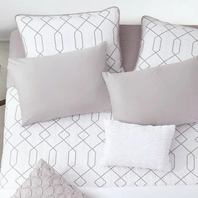 - Set includes one comforter, one coverlet, two decorative pillows and two standard shams (four with full/queen size)
