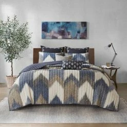Buy 👏 Madison Park Everett Reversible Jacquard Coverlet Set Blue/Brown ⭐