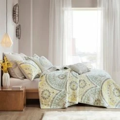 Cheapest 💯 Urban Habitat Yellow Leyla 100% Cotton Printed Coverlet Set (Full/Queen) 7pcs 👍