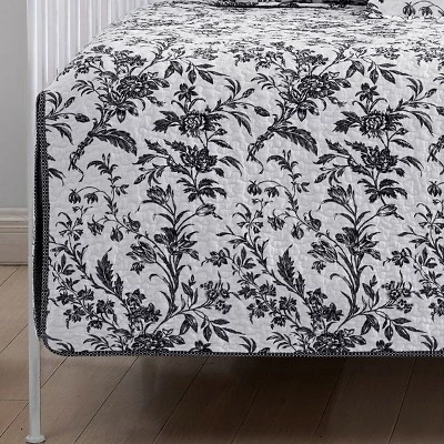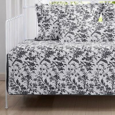 Laura Ashleyβs best-selling Amberley quilt, now available in a daybed set. Features a timeless floral toile design in bold black and white. This convenient set is perfect for your guest room or any room – daybed, two shams and decorative pillow cover included. Just add sheets! (Your favorite Laura Ashley sheets are sold separately) pillow insert not included. Daybed face, reverse, shams, and pillow cover made from 100% cotton. quilting fill is a blend of 80% cotton 20% polyester for warmth without the added weight. Measurements: twin daybed- 39″w x 75″l, standard shams- 27″w x 21″l, pillow cover- 36″w x 14″l. Machine washable for easy care.