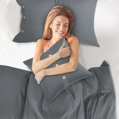 Feature: 1. Made of upgraded 110gsm brushed polyester microfiber fabric.Advanced dyeing technology is used to protect your bedding from fading easily due to washing. Thickened fabric with durability and softness. 2. The 5-piece bedding set of solid color makes the bedroom simpler and more elegant. You donβt need to spend time looking for pillowcases to match your bedding. Moreover, The extra throw pillowcase is very suitable to be placed on the sofa in your room, matching the style of the room. 3.The solid color bedding set is simple in design, which not only makes you feel more relaxed and comfortable but also can match a variety of ornamental styles. The whole 5-piece set includes duvet cover, pillowcase and throw pillowcase, all designed with wooden round buttons, presenting a high-end and retro style. 4. 4 concealed corner ties keep the duvet fixed in place allowing your various sleeping posture and ensuring greater comfort at night.Specification: 1. Material: 110gsm Polyester Microfiber Fabric 2. Available Color: Dark Brown, Dark Purple, Dark Gray, Light Purple, Light Green, Light Gray, Beige, Khaki, Burgundy, Pink, Navy Blue, White 3. Available Size: β TWIN SIZE: Duvet Cover: 68″x90″, 2 Pillowcase: 20″x25″, 2 Throw Pillow Cover: 18″x18″; β‘ QUEEN SIZE: Duvet Cover: 90″x90″, 2 Pillowcase: 20″x30″, 2 Throw Pillow Cover: 18″x18″; β’KING SIZE: Duvet Cover: 90″x102″, 2 Pillowcase: 20″x36″, 2 Throw Pillow Cover: 18″x18″.Washing Care Instructions: 1. Soaking time should not be too long. 2. Machine wash in cold water with a gentle cycle. 3. Do not bleach, tumble dry in the low cycle. 4. In order to keep the color bright, you can turn it inside out when drying.Note: 1. Due to the light and screen setting difference, the actual color of the item may be slightly different from the pictures. 2. All dimensions are measured manually, thus please allow deviation (ranged at 1-3cm) due to different measuring methods and tools!